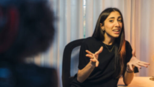 A Caucasian vlogger coach talking to the camera in an enthusiastic manner while making a videoblog