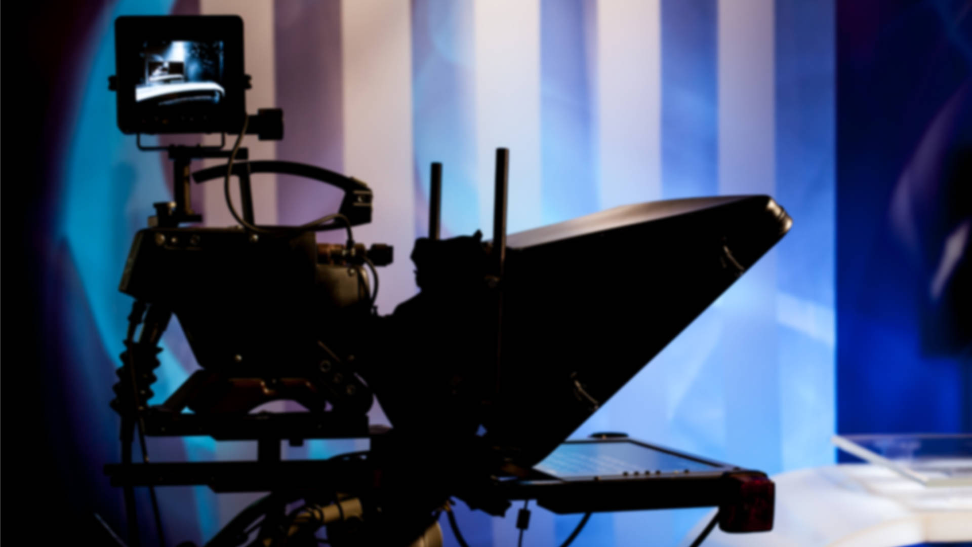 Close-up shot of a video camera for shooting or recording a show in a TV studio