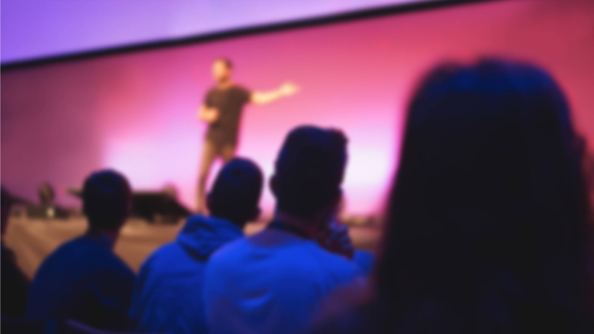 Speaker giving conference speech to audience at public event - Focus on right man back